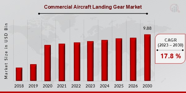 상업용 항공기 착륙 장치 시장은 2023년부터 2030년까지 연평균 17.8%의 높은 성장률을 기록하며 2030년까지 약 98.8억 달러 규모에 이를 것으로 전망됩니다. 이 성장은 글로벌 항공 교통량 증가, 항공기 수요 확대, 그리고 착륙 장치의 기술적 진보에 기인합니다.